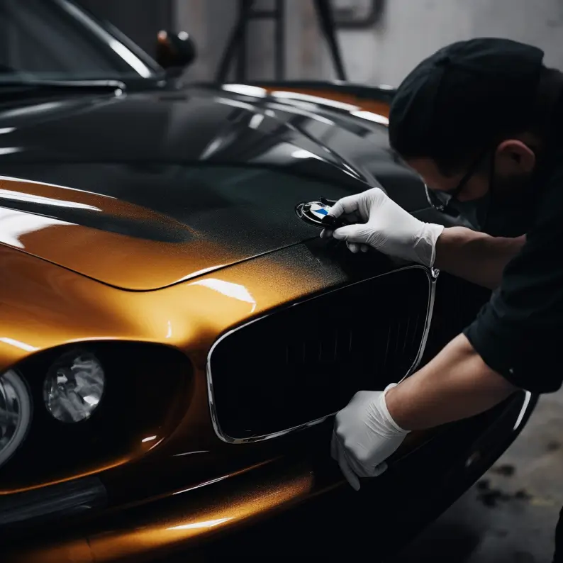 Nano ceramic coating is a liquid polymer applied to the exterior of a vehicle to protect it from external elements and enhance its appearance. It forms a strong chemical bond with the surface, creating a protective layer that is resistant to scratches, UV rays, corrosion, chemicals, and environmental contaminants. Nano ceramic coatings typically provide long-lasting protection and can repel water and dirt, making the vehicle easier to clean and maintain. They can also enhance the gloss and shine of the paint, giving the vehicle a sleek and glossy finish.
